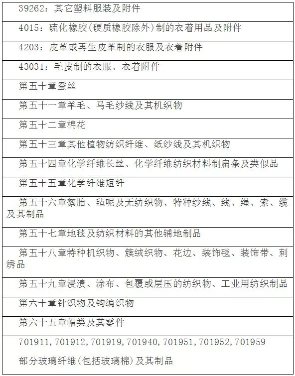 涉及產(chǎn)品包括(僅指紡織服裝統(tǒng)計項下產(chǎn)品):