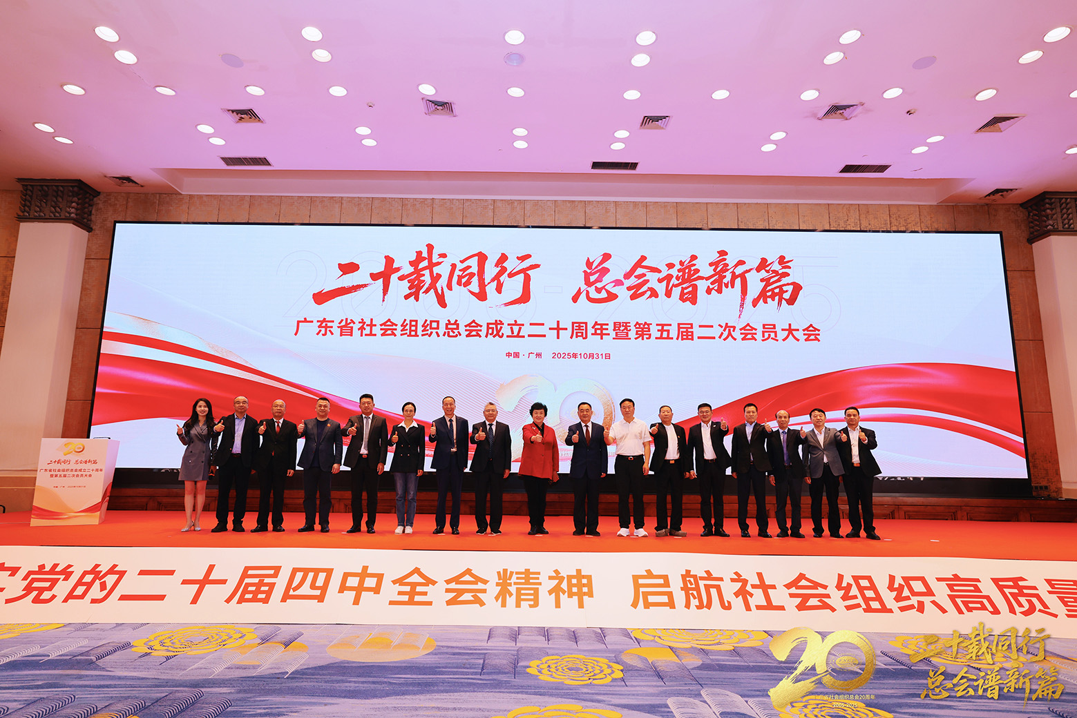 2025年10月31日,廣東省社會組織總會(以下簡稱“總會”)在廣州召開第五屆二次會員大會暨二十周年系列活動。大會認真學習貫徹黨的二十屆四中全會精神,落實省委、省政府和省民政廳有關決策部署,回顧總結2024年10月以來工作情況,部署下步發展工作。中國社會組織促進會、廣東省社會組織總會、廣東省國強公益基金會等商協會領導以及會員單位負責人共750人參加了會議。廣東省縫制設備商會常務副會長邵力世、副秘書長黃笑妍參加本次會議。