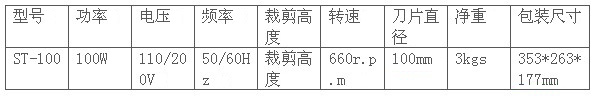 本機特點 圓刀裁剪機可用于棉、毛、麻、絲綢、化纖等織物的裁剪。本機切裁輕快、連轉平穩,使用舒適、磨刀方便,鋒利。 主要技術參數: