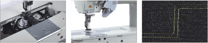 該機應用范圍較廣,主要用于襯衫、制服、大衣、女式內衣、夾克、牛仔褲等的縫制。本機具有雙針離合式針桿結構,使縫紉機拐角、銳角、直縫時準確方便,機桿與送布牙同步送料,可防止縫料滑移,線跡美觀、整齊。
