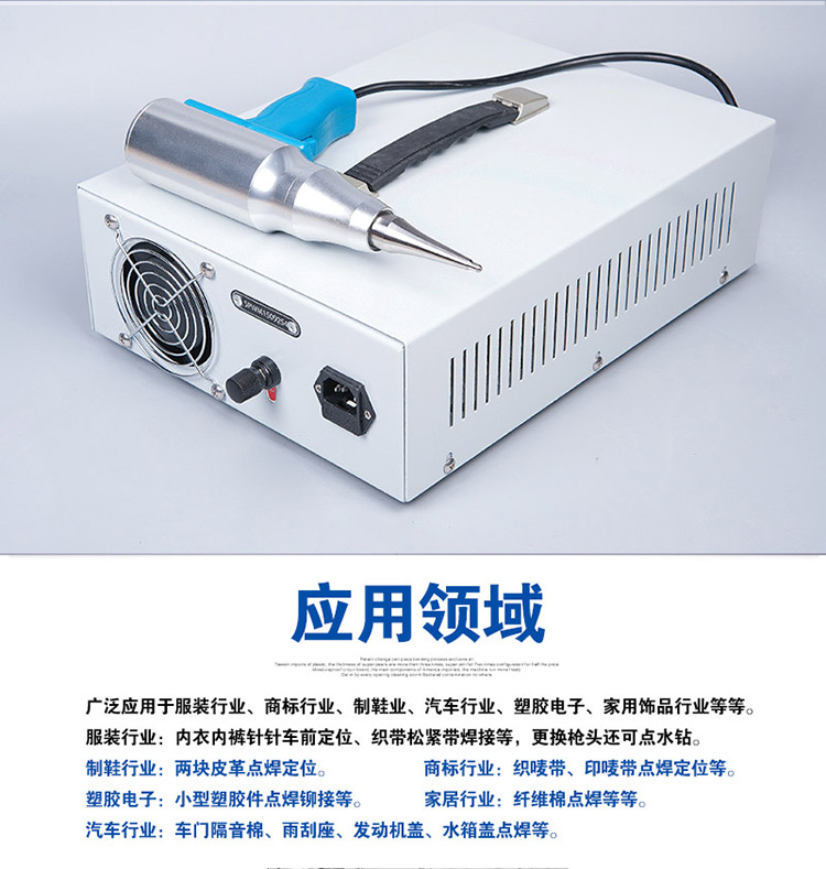 服裝行業(yè):內(nèi)衣內(nèi)褲針車前定位、織帶松緊帶焊接等,更換槍頭還可點(diǎn)水鉆。